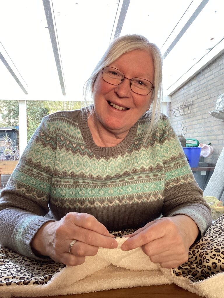 Daarnaast geef ik als vrijwilliger naai workshops bij SterkHuis, een organisatie die mensen opvangt bij lastige of bedreigende thuissituaties, zoals huiselijk geweld, seksueel misbruik, ook opvang van tienermoeders die tijdelijk ondersteuning nodig hebben. Het geeft me veel voldoening om cliënten naai- vaardigheden aan te leren, waar zij hun leven lang profijt van kunnen hebben. Er worden eenvoudig projecten gemaakt, zoals een spuugdoek, tas, knuffeldoek, kussen..